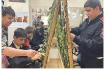 Обучающиеся 7 «К» кадетского класса вместе с педагогом-организатором и руководителем школьного волонтерского отряда «Полет» Алёной Олеговной Войтик отправились в гости к Совету ветеранов Ярославского района, чтобы принять участие в плетении маскировочных сетей для защитников Родины.